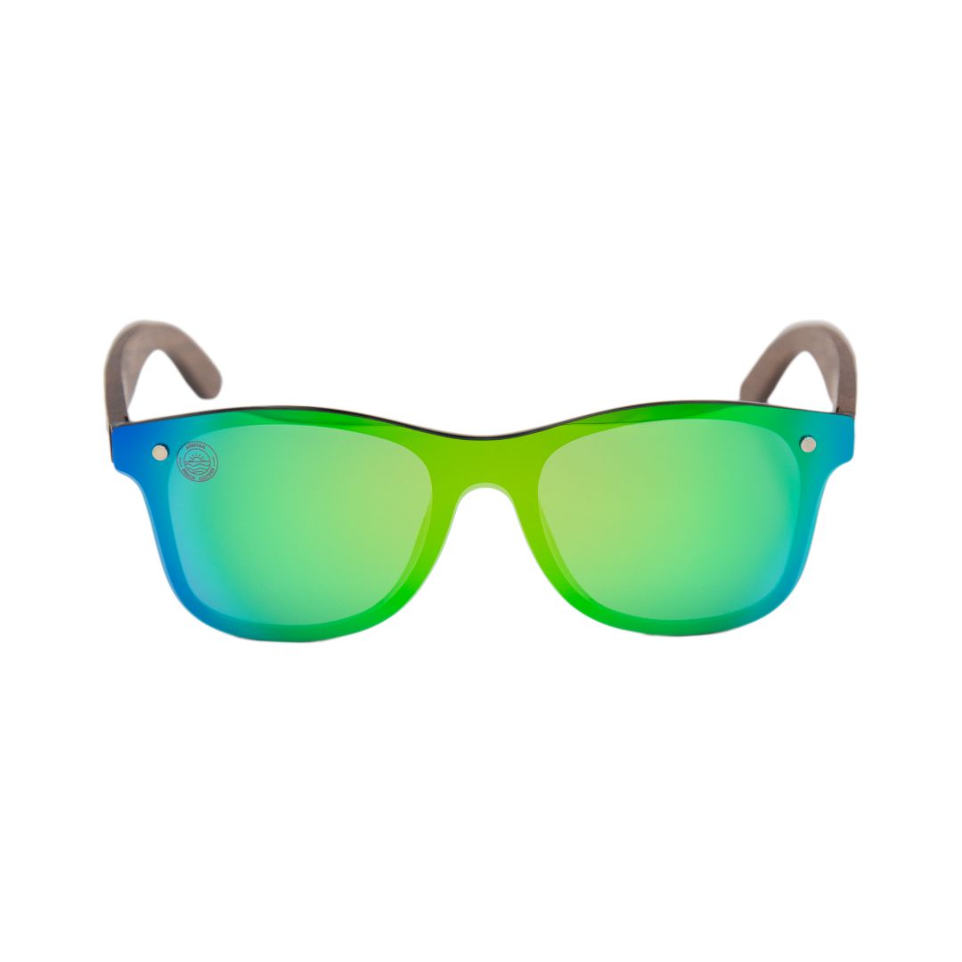 Polarised Mirror Green Ultra clear Lens with wooden recyclable arms.